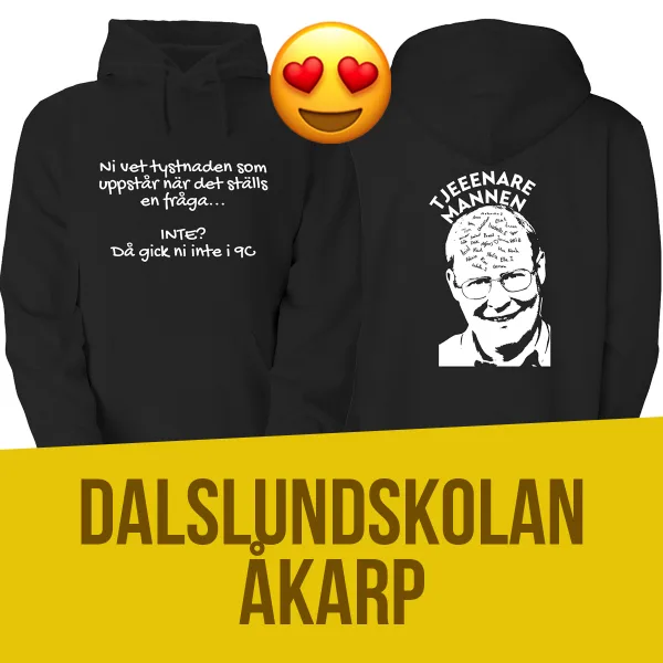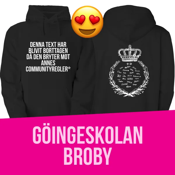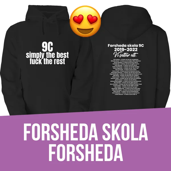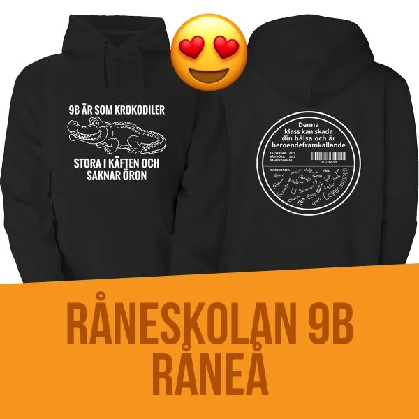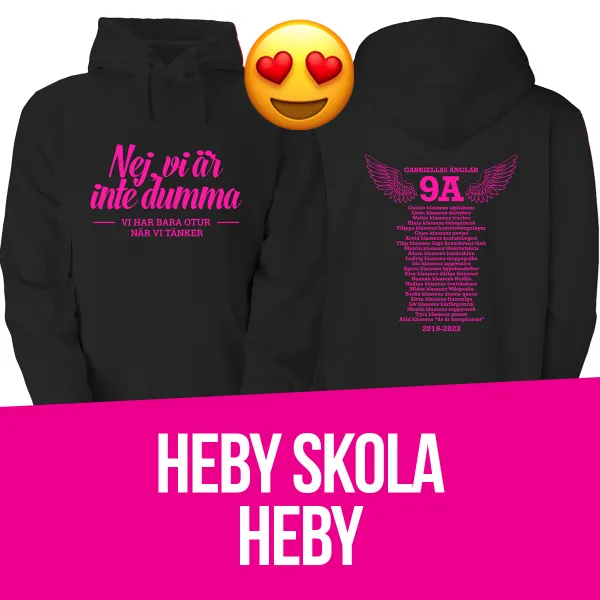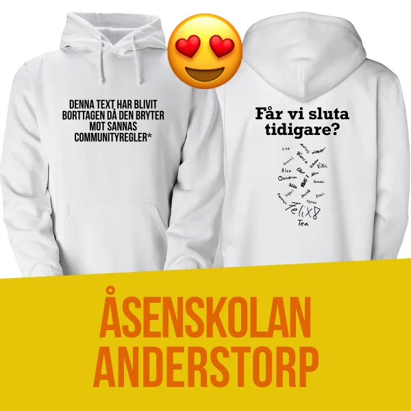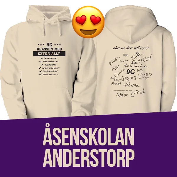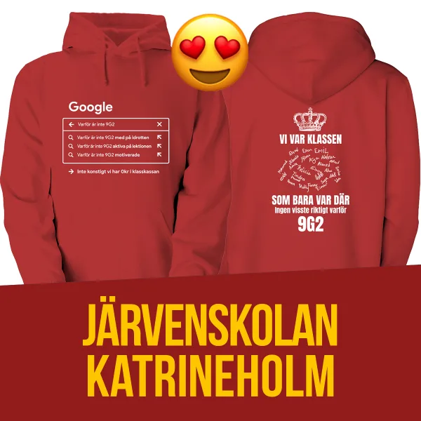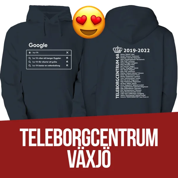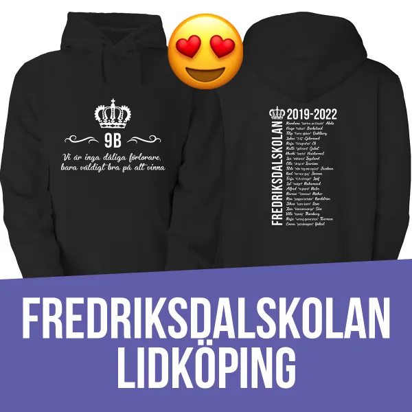 Snart dags för skolavslutning? Ja då är det på tiden att beställa en gemensam klasströja. Hos oss och våra konkurrenter, exempelvis Studenterna finner du billiga klasströjor till bra kvalité. Du kan välja bland ett stort urval av tryck och färger till din hoodie eller collegetröja, allt för du ska kunna designa din helt unika klasströja! Vill ni ha ett helt eget tryck? Inga problem, ladda bara upp ert tryck under beställningsprocessen så fixar vi det utan extra kostnad! Kontakta oss om där är något ni undrar.